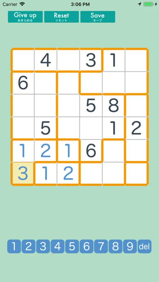 If two identical numbers appear in the same row or column, at least that many cells with other numbers must separate them. For example, two cells both containing '1' may not be orthogonally adjacent, but must have at least one cell between them with a different number. Two cells marked '3' in the same row or column must have at least three cells with other numbers between them in that row or column, and so on.