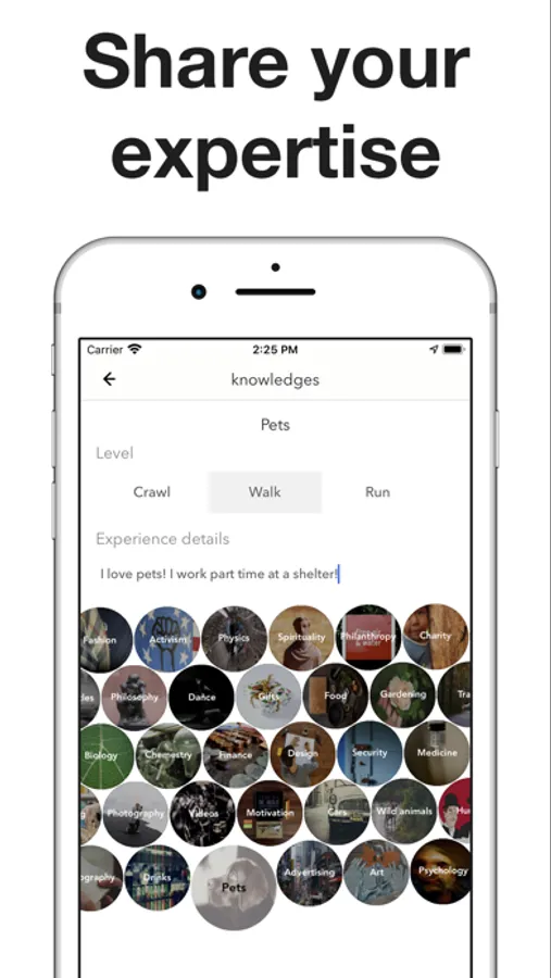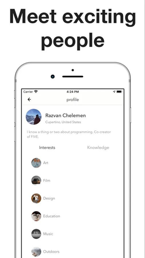 Gain new knowledges in the areas you are interested in and share your experience with others. FIVE helps you connect and interact with people who share the same passion, because you are the sum of the FIVE people you spend the most time with.