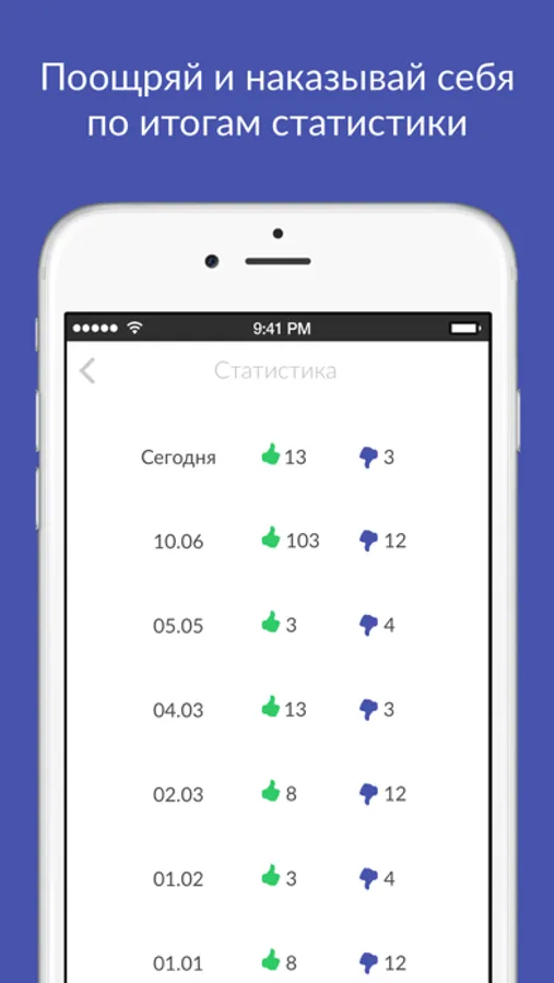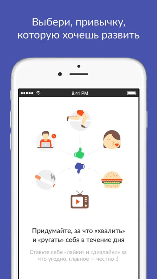 Успешного человека делают правильные привычки. «Самооценка» поможет вам идти к намеченной цели, не отклоняясь от курса. Считайте свои достижения и проступки сами, ставя себе «лайки» и «дизлайки» в течение дня.