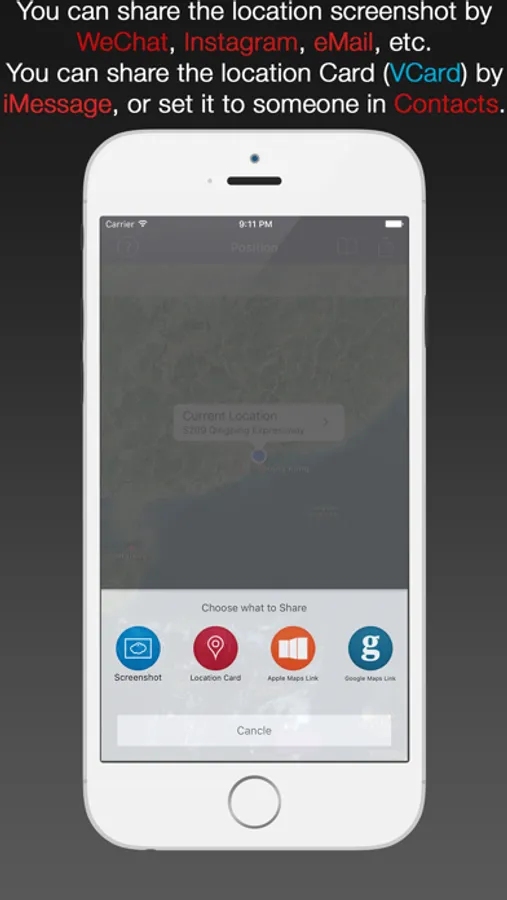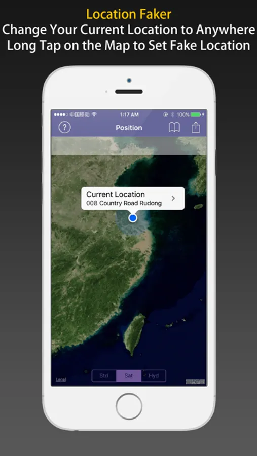 The App can NOT display or change the user's real current location, the location on the map view is a fake one, just for fun.