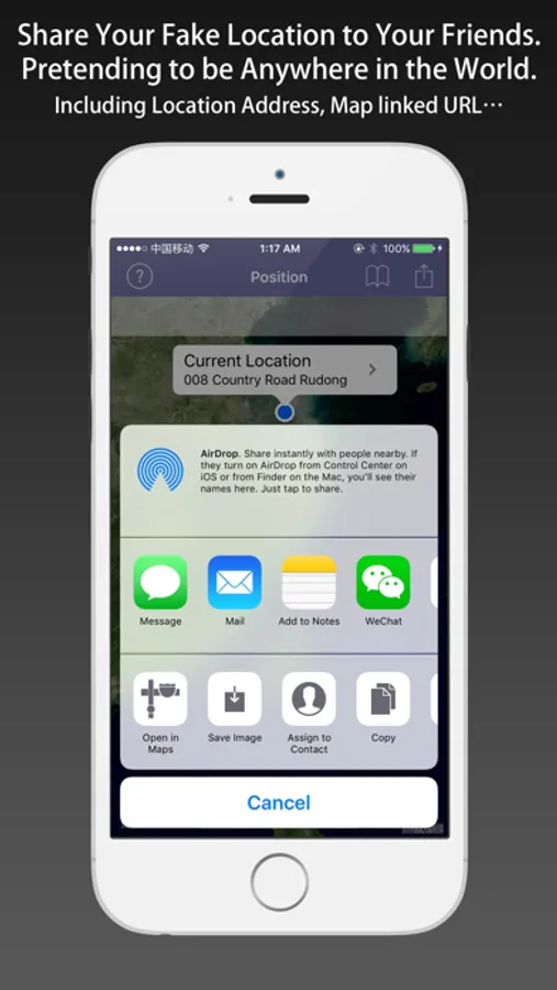 After selecting the exact location (long press), you can share a screenshot of your fake location to trick your friends.