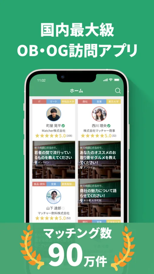 大学関係なくOB・OG訪問ができる、国内最大級の就活相談アプリです。