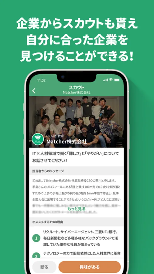 ②企業から"スカウト"も貰え、自分に合った企業を見つけることができる