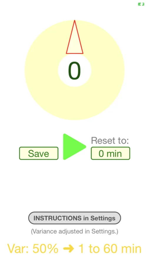 Slide the arrow to set the timer from 0 to 60 minutes. If you set no variation (below), then this app will act like a typical timer (albeit with some additional access features).