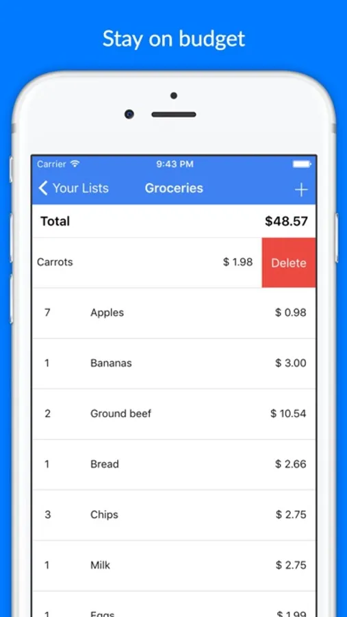 This app allows you to simply create a shopping list then write down how much each item is. You can also share a shopping list to your friends via SMS/iMessage.