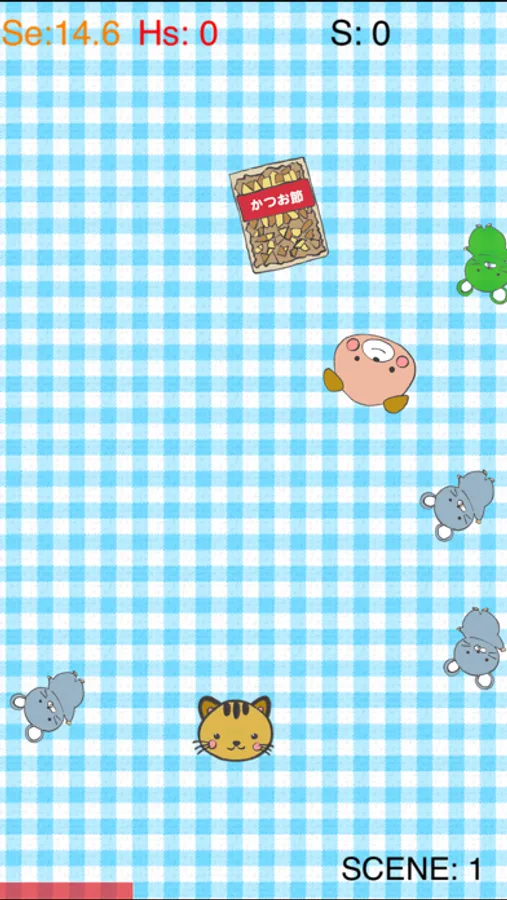 This is a game that uses the accelerometer. Tilt the screen to collide with cats to rats. Upon contact with the dog it will reduce the life. When life becomes 0 the game is over. Life will increase when I come out from time to time to get this favorite food. It will continue from 1 scene Once you clear the 18 scene.