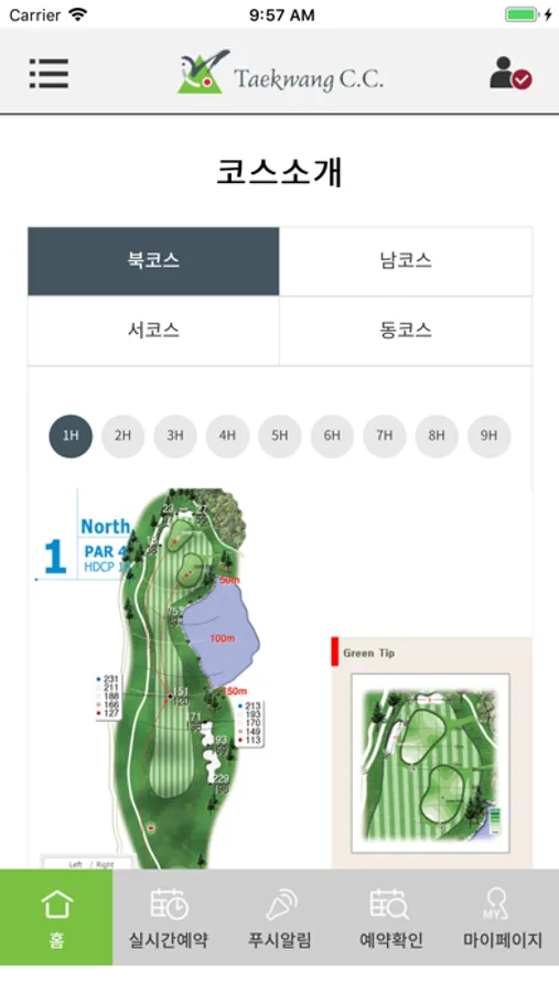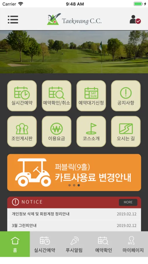 - 요금안내, 코스안내, 회원권 안내, 부대시설 안내, 사이버 회원가입 및 모바일 예약 기능 제공.