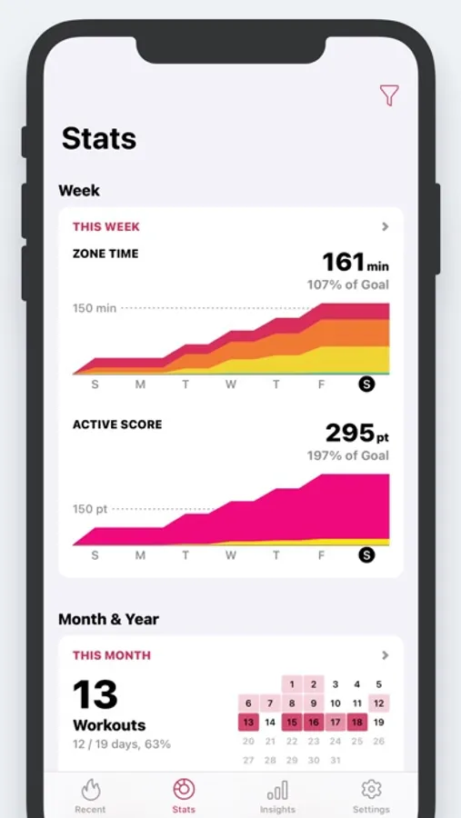 Zones reads all Workouts data from the Apple Health app, so you can use Zones as a total workouts dashboard.