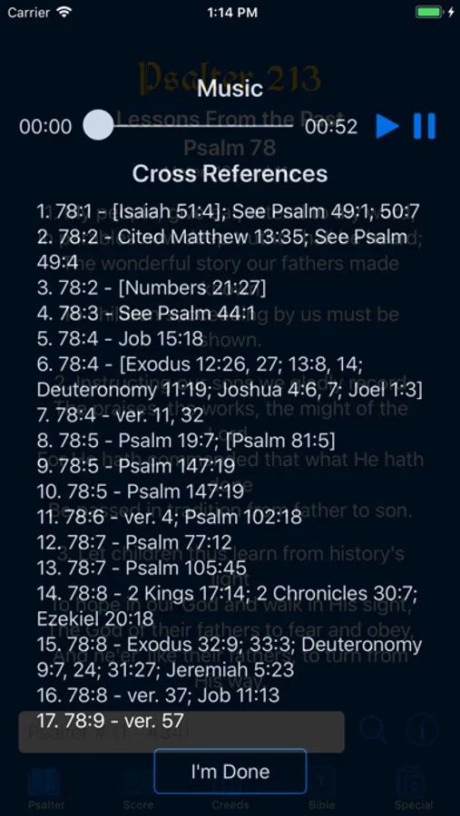 - Long press to copy and share the psalter, bible text, confession or creed to those around you!