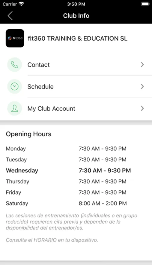 · Reservar horas de clase, entrenamientos personales o en grupos reducidos (para los clientes presenciales de fit360)