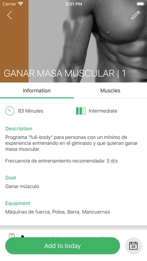 Puedes sincronizar esta aplicación con Apple Health App. Si habilitas esta conexión, cualquier entrenamiento en la aplicación de Health se añadirá automáticamente a tu calendario de actividades.