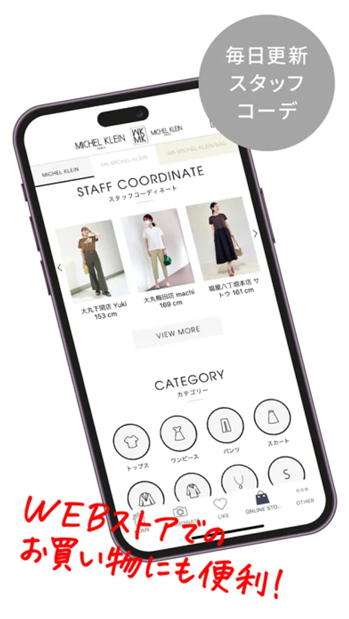 各ブランドの新着や人気アイテム、ショップスタッフからのおすすめコーディネートを随時更新してお届けします。