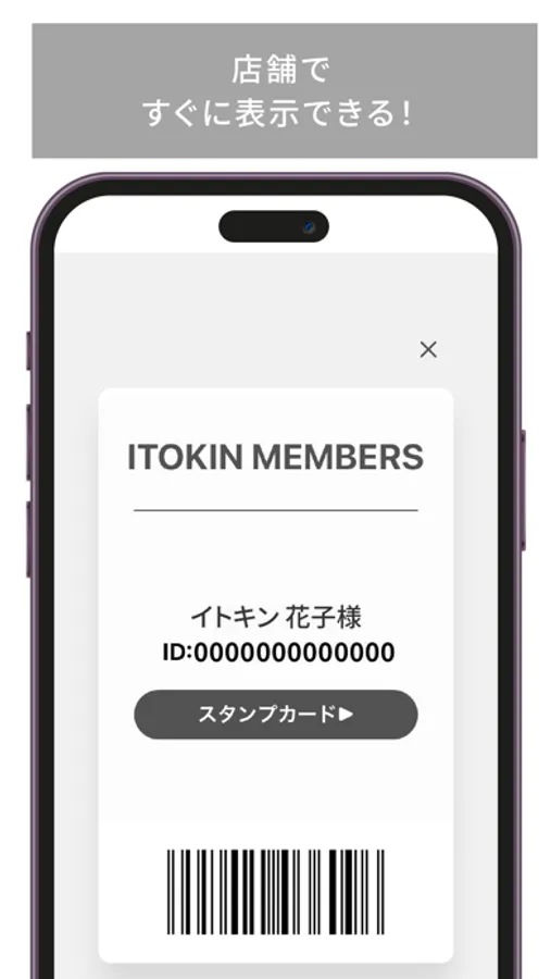 店舗でのご購入時に使える会員バーコードの表示がスムーズに行えます。