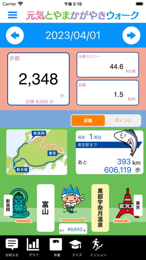富山県の歩数計アプリです。富山県民向けですが、県外の方もご利用になれます。