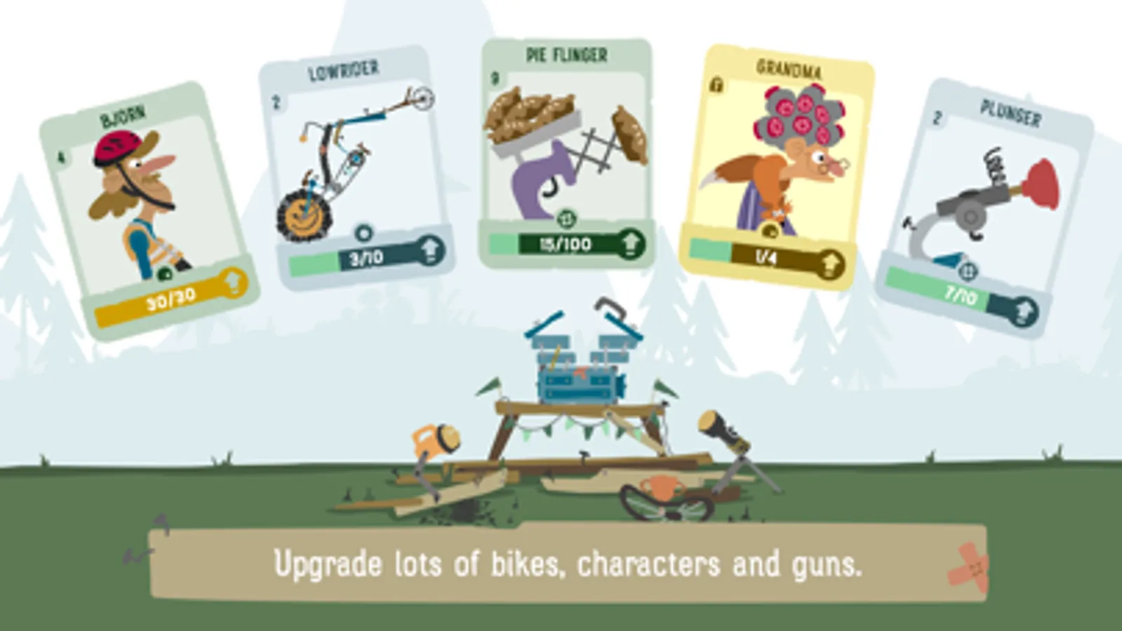 Bike and shoot your way through the crazy tracks at Big Wheelie's. Collect cards upgrade and beat your friends.