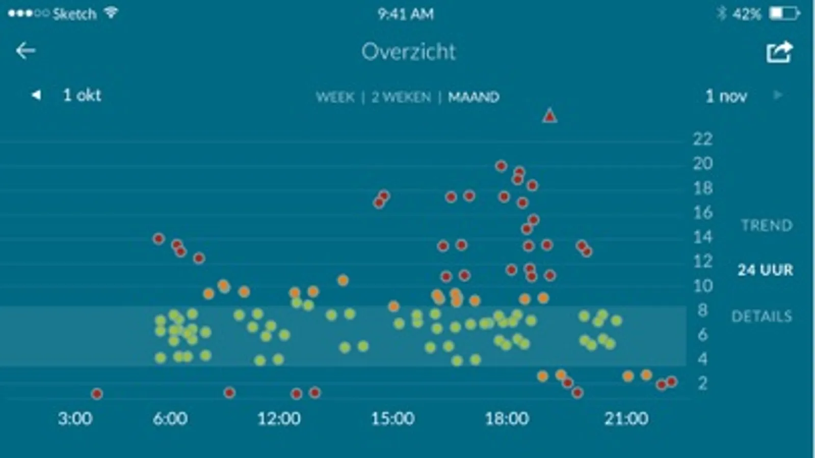 - DiaCare app: when the DiaCare app is solely used by the diabetes patient, and not by their caregiver, the app visualizes data from devices measuring blood glucose levels so that the patient has insight in their health. Furthermore, the app supports keeping track of insulin levels, carbs and physical activity.