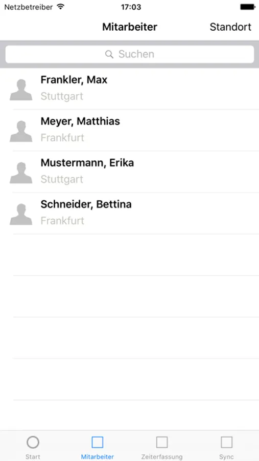 - Komfortabler Zugriff auf die Mitarbeiterliste mit Kontaktdaten von unterwegs