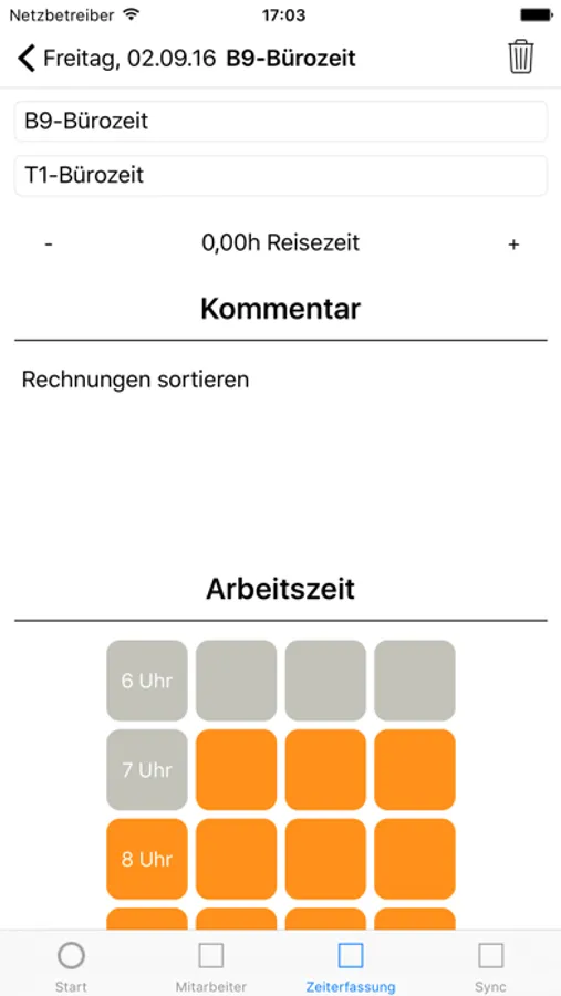 Damit lassen sich Ihre Arbeitsstunden auch dann eintragen, wenn gerade kein Internetzugang verfügbar ist. Durch die anschließende Synchronisation werden die erfassten Zeiten mit dem Server abgeglichen. Folgende Funktionen stehen Ihnen zur Verfügung: