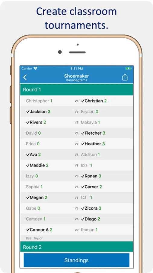 With just a few taps, create a class tournament for almost any game (educational or otherwise). You can set it up for students to compete individually or in teams. You control the composition of the teams and the number of games. Choose from round-robin, single-elimination, or "quick-tournament." Record game results with a single tap. Popsicle Sticks will keep track of the standings, and, if you'd like, automatically slot the best players (or teams) into an end-of-tournament playoff! May the best student win!