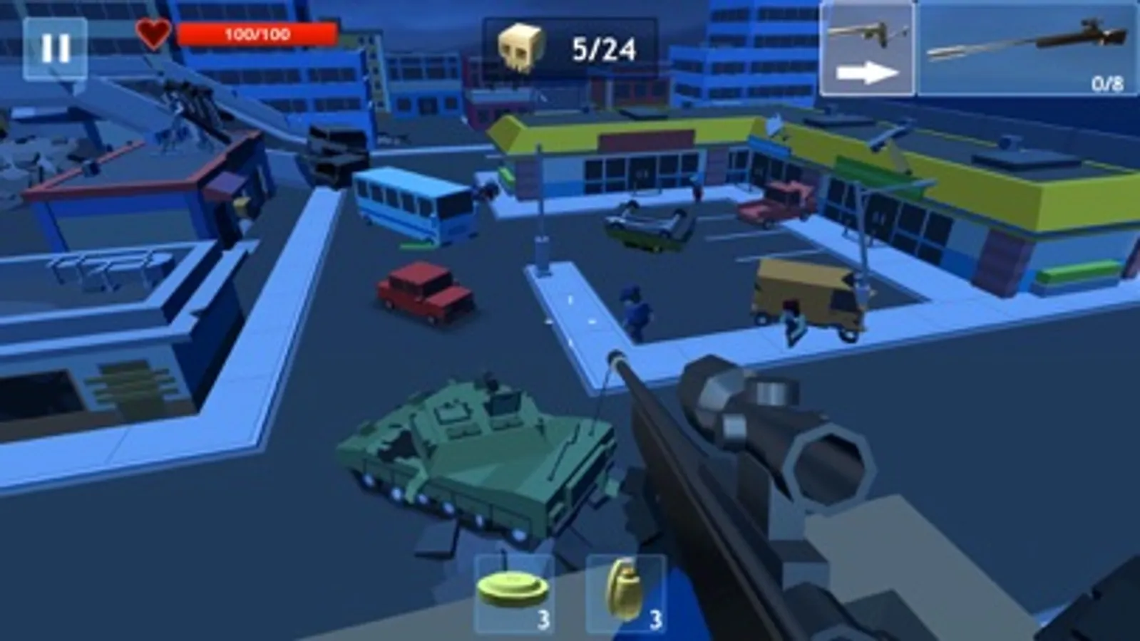 In this thrilling zombie shooter, you are armed with guns and melee weapons, tech, and armor, to help you survive the hordes of dead swarming this city. To become the ultimate zombie destroyer, you will need all of your tactical training and military skills to fight the dead in 7 unique environments.