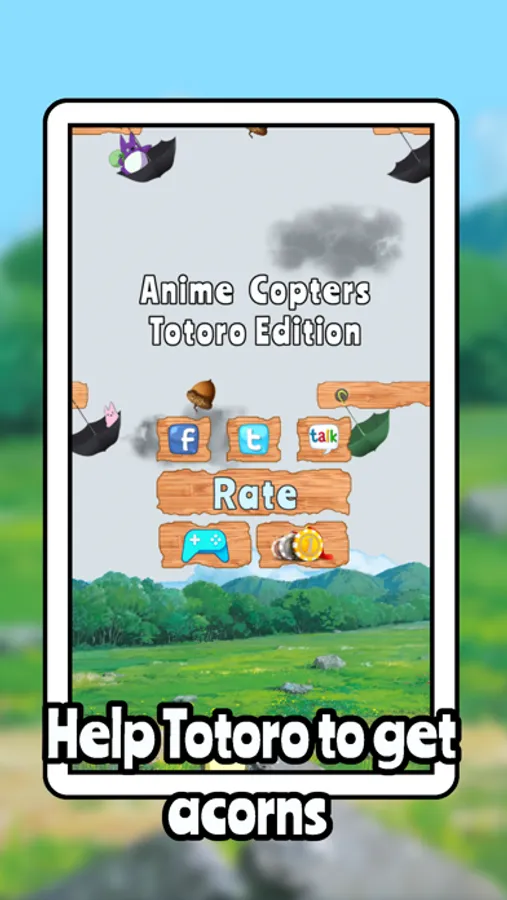 Help Totoro to get as many acorns as you can, avoid umbrellas with Mei, Chuu-Totoro and Chibi-Totoro and earn points! Share your score and challenge your friends on Game Center.
