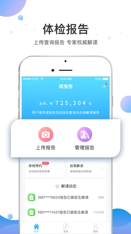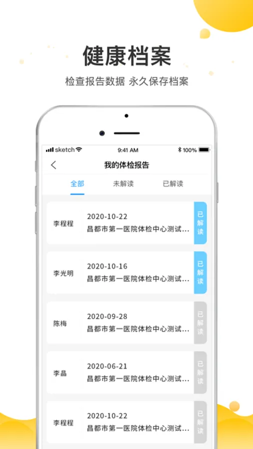 “读报告”提供体检报告查询、体检报告存储、体检报告解读服务,解决体检报告领取麻烦、不易保存、看不懂问题,能得到专家针对性的健康指导。并且提供日常身体指标监测,丰富趣味的健康测试,以及系统全面的健康知识,帮助了解改善自己的身体状况。是由全国体检预约平台中康体检网打造的一款基于体检报告健康管理应用。