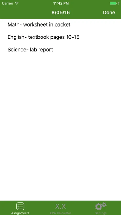 -Assignment Pad: Each day, Stutility will automatically create a place for you to write your homework, upcoming tests, projects, notes etc. Previous days are always saved, so you can see your homework from last Tuesday!