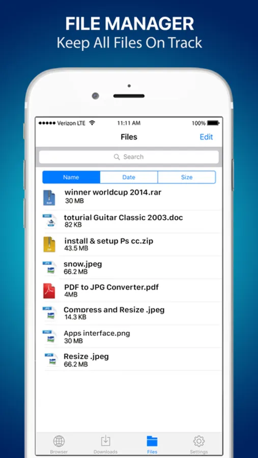 Files Pro allows you to search for files in Safari-like Web Browser, manage your files and search history, set password to protect your privacy.