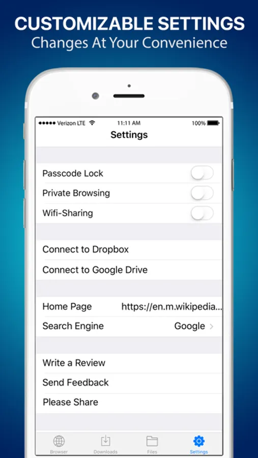 What is more, Private Browser links with popular cloud platforms, including Dropbox, Google Drive. You can now sync all your files to your device as well as save them to cloud and free your precious storage.