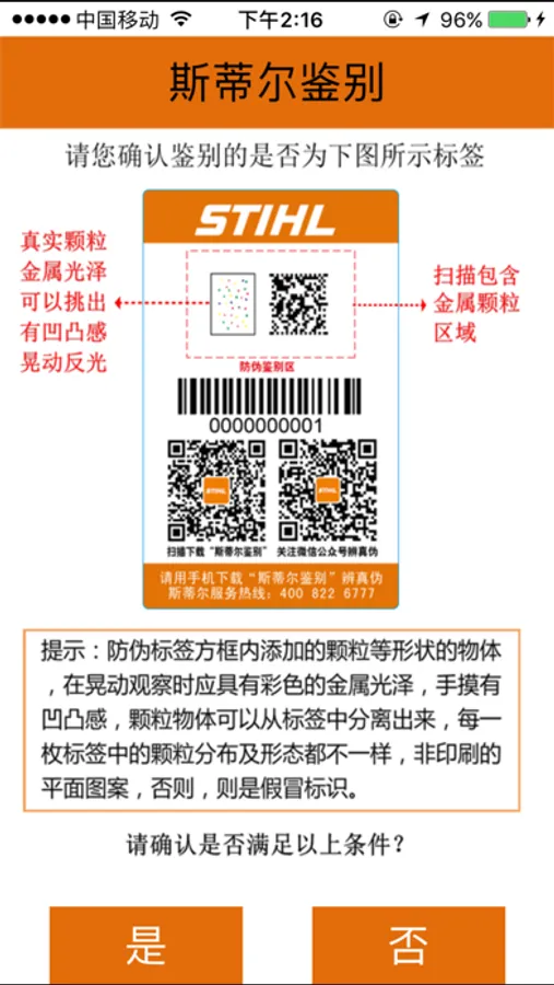 斯蒂尔鉴别 App能快速、准确地对斯蒂尔防伪标签进行鉴别。