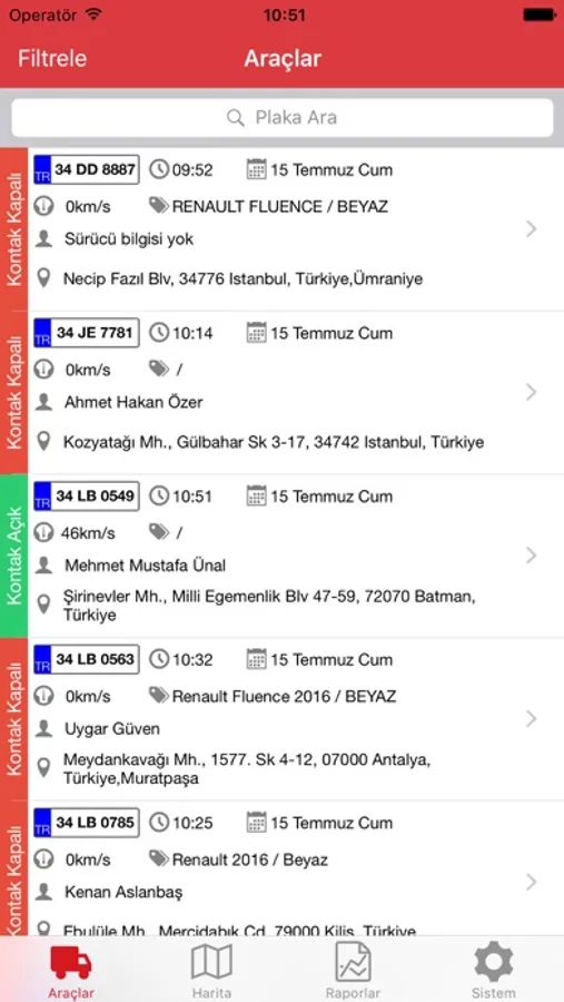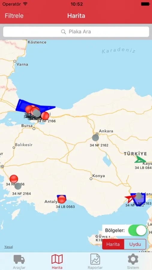 Tüm araçlarınızın son konumları, kontak durumu, hızı, alarm ve ihlal durumlarının tamamını mobil uygulamalar üzerinden kolaylıkla takip edebilirsiniz. Harita üzerinde araçlarınızı görebilir, filonuzla ilgili raporlara erişebilir, animasyon gösterimi ile de geçmiş konumları da görüntüleyebilirsiniz. Müşterileri ihtiyaçları göz önünde bulundurularak düşük veri transferi ile beslenen mobil uygulamalar, hızlı ve son derece kullanışlı olarak tasarlanmıştır. Böylece hem cep telefonu kolaylığında erişim sağlarken hem de data transfer maaliyetleri makul düzeyde kalmaktadir.
