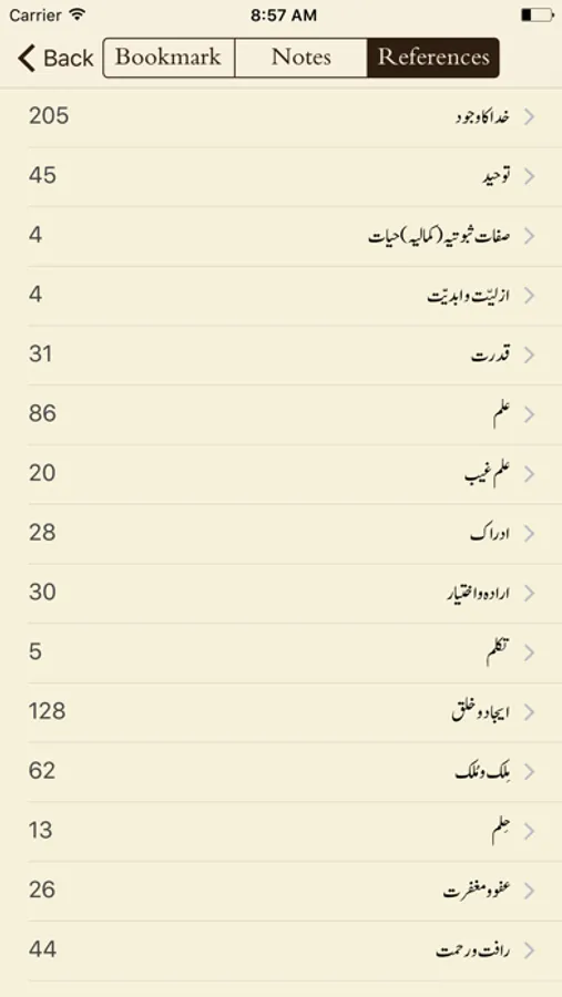 It has multiple english and urdu translations by different translators with their names, to better understand. it also provides zoom in, zoom out pinch gesture and font sizes in settings.From settings, users can have multiple options to customize the application according to desire. Users can also turn on and off english and urdu translations from settings. Users can also bookmark, add to notes, share with friends and copy favourite ayah by just tapping on it.