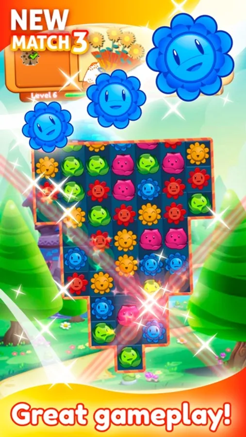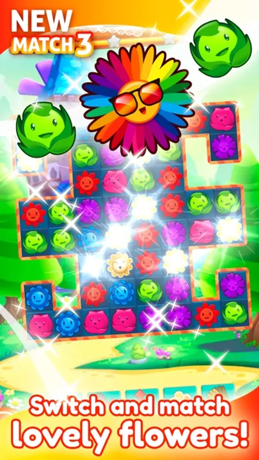 Flowers are popping ! Get into our blossom garden, it's fairy ! Swap and match flowers in this sublime puzzle game, and you will get hours of fun. Play with cute flowers and plants, compete with friends, and be the king of this game. Travel through fantastical worlds and solve all the puzzles and try to get three stars in each level. It is absolutely a high-quality game for entertainment and killing time.