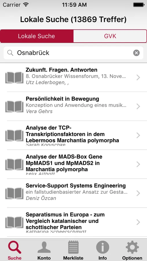 With the BibApp you can access by Smartphone or Tablet PC your patron's account and the catalog of the library as well as the GVK.