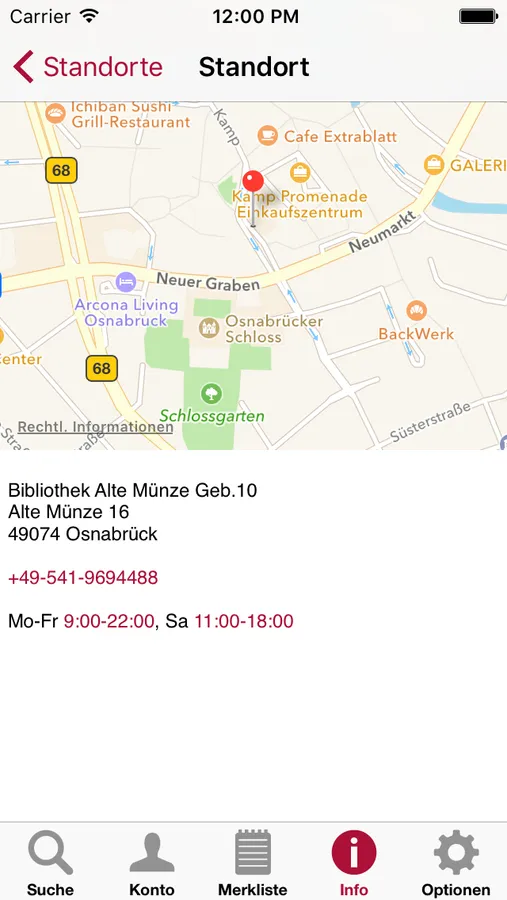 In addition you can access addresses, contact information, locations and current information of the University Library.
