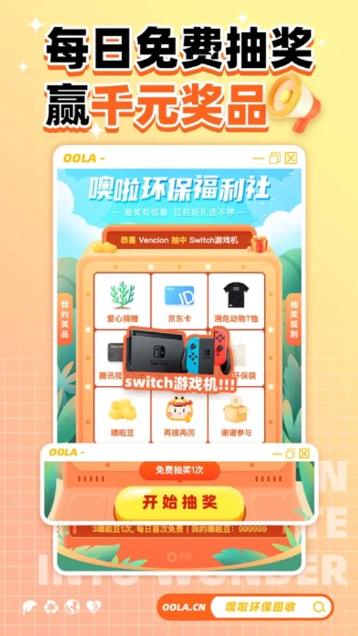 环保回收解锁闲置物品新生命。为地球的明天,将低碳进行到底。噢啦与你同行~