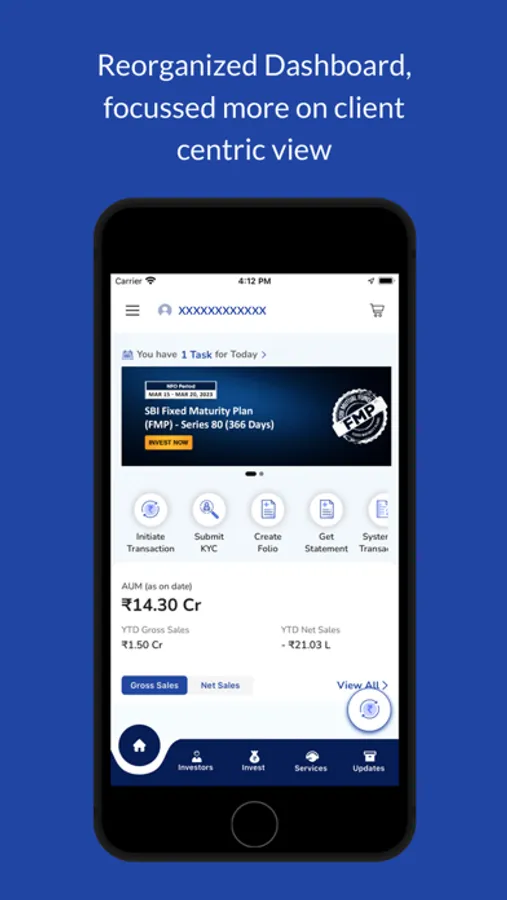 The whole new SBIMF Partner App is designed to provide the Mutual Fund Distributors with an effortless solution to manage various Mutual Fund accounts of their clients. It is a comprehensive Mutual Fund Distribution app that enables Mutual Fund Distributors (MFDs) to stay connected with their clients seamlessly. With the new SBIMF Partner App, MFDs can not only invest in Mutual Funds for their clients in the most effective manner without any paperwork but also manage their Transactions, Business, Meetings and Teams in a much better way.