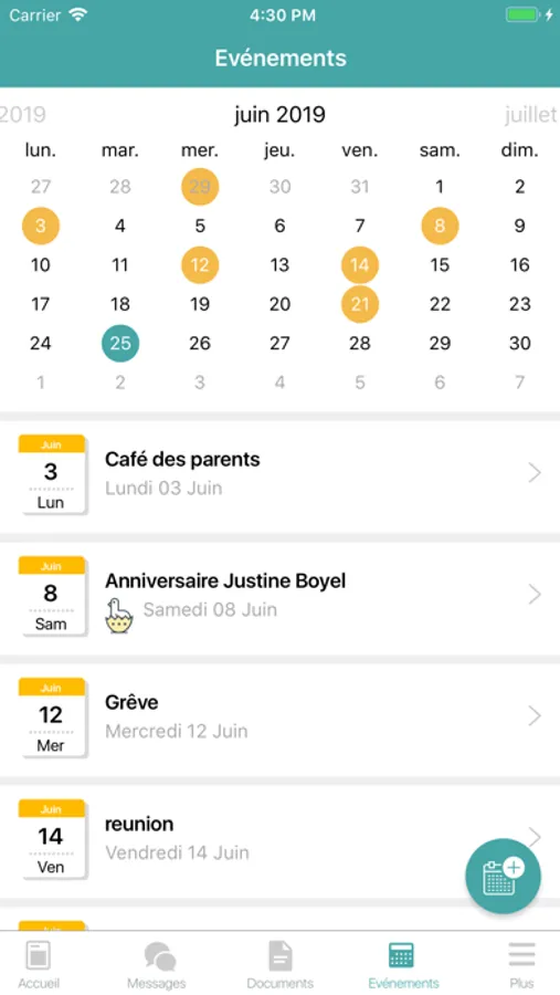 - Accéder au calendrier de la crèche pour retrouver les temps forts