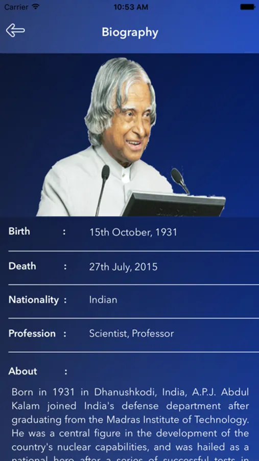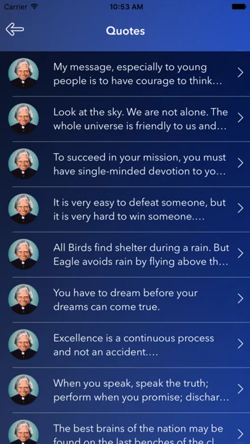 This application has a complete collection of Abdul Kalam quotes. It features all of is best quotes which can truly inspire any human across the globe.