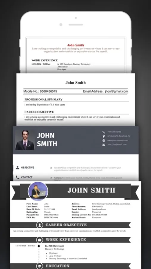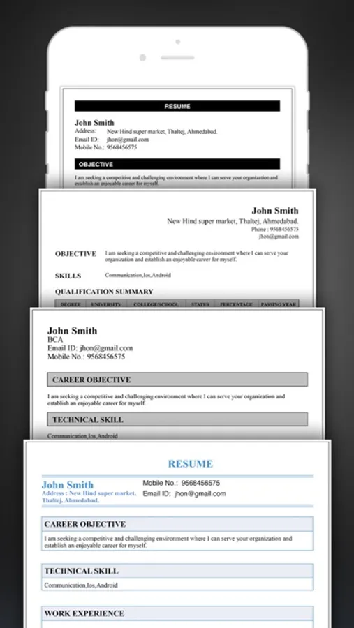 So, in this cut throat competition era, many people face issues when putting together a resume, which is why we have designed this application to help all inspiring professionals to land on their dream job. All you are required to do is download the app, “Resume Creator”, fill the blanks and create your professional Resume/CV. There is no need to sit and waste your time in formatting and aligning your resume as the app has 12 pre-default formats, individually for Resume and CV. Using resume creator building tool you can be assured of producing a professionally designed as well formatted resume with the greatest of ease