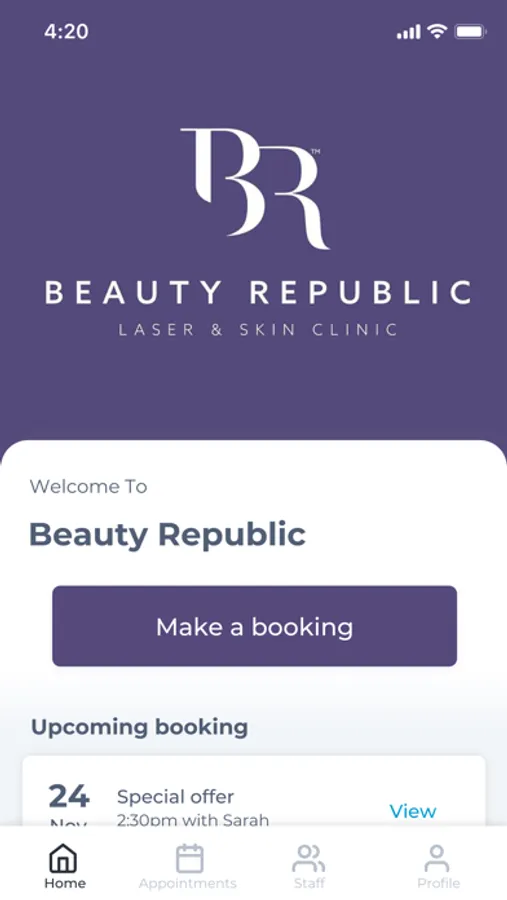The Beauty Republic app makes booking your appointments and managing your loyalty points even easier. You're just a few taps away from feeling good and looking great!