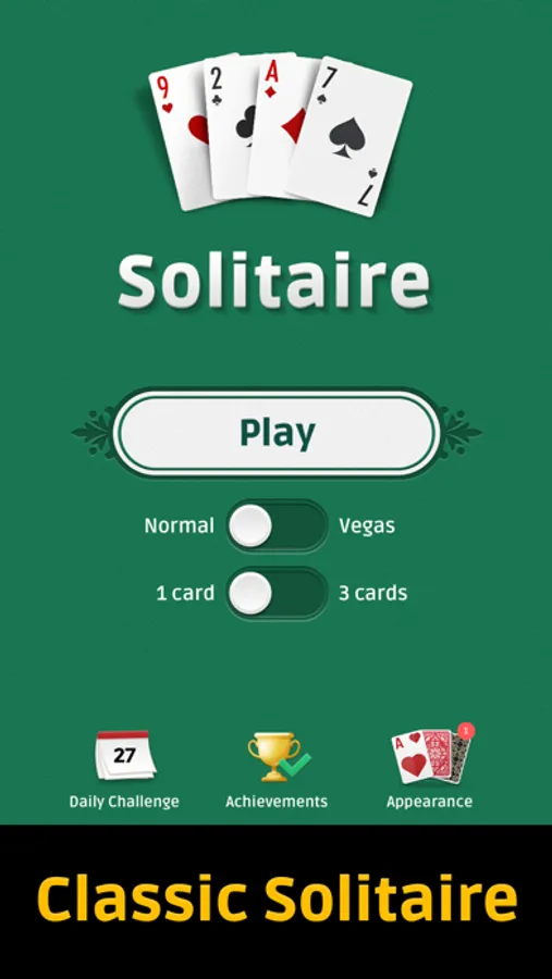 - Standard solitaire mode or Vegas mode