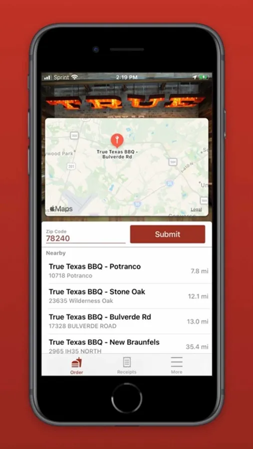 Spanish: Puedes ordenar True Texas BBQ desde tu teléfono o tablet. Personalizar su BBQ como lo quieras y guardar sus ordenes favoritos para ordenes futuros. Agregar elementos desde todo el menú – acompañamientos sabrosos, postres deliciosos y sodas o té. Nosotros le mantendremos fijado en el estado de tu pedido y hacerle saber cuando está listo para la recolección.
