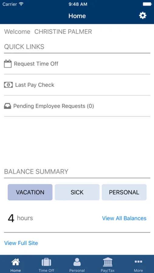 You can view Time Off, Personal Info, Pay/Tax info, and Benefits. You can make Time-Off requests and edit your Personal Info.