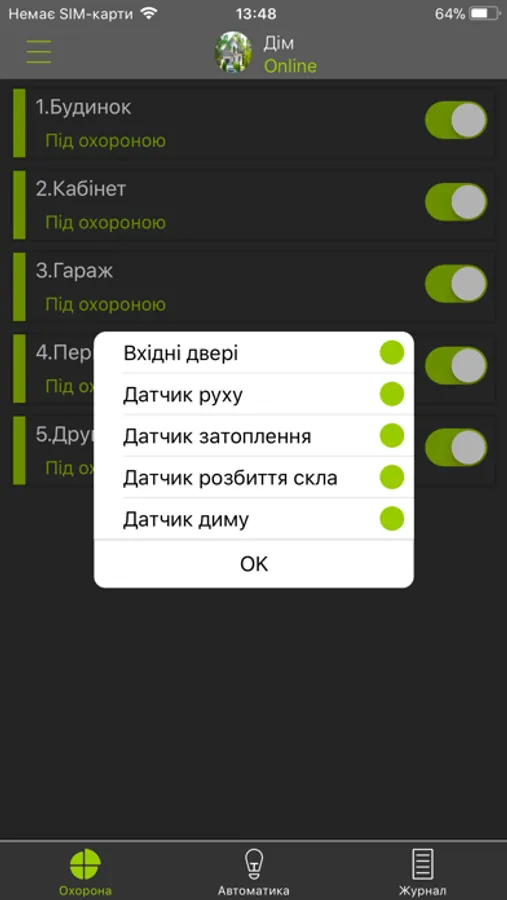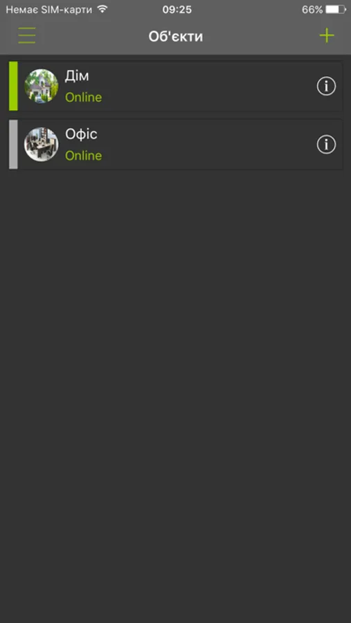 The application supports simultaneous operation with 16 objects. This may be your apartment, house, office, garage and more.