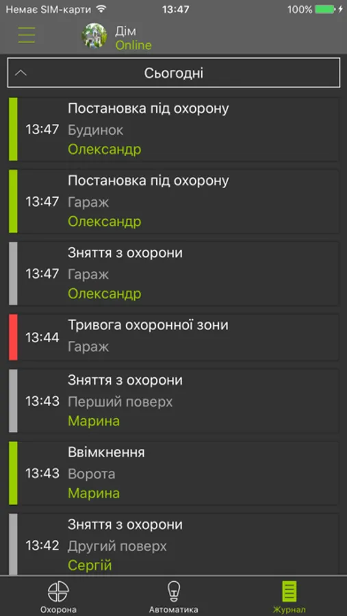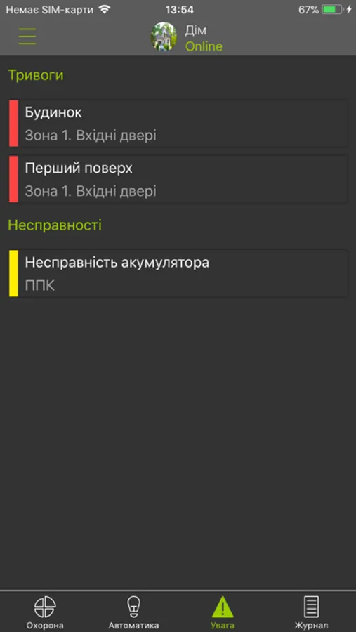 - Instant reception of information from the security system in the form of PUSH messages (alarms, faults, arming/disarming, etc.).