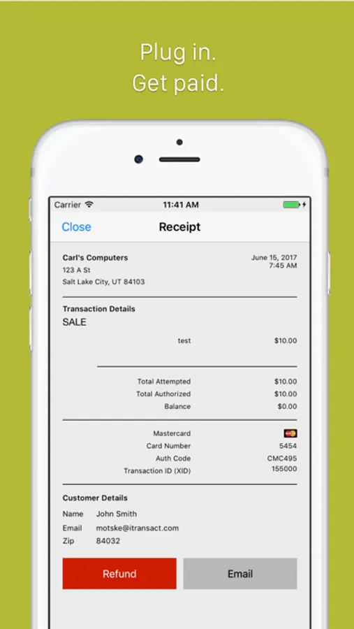 • Full point-of-sale features such as payments, voids, refunds, electronic receipts, and full transaction history.