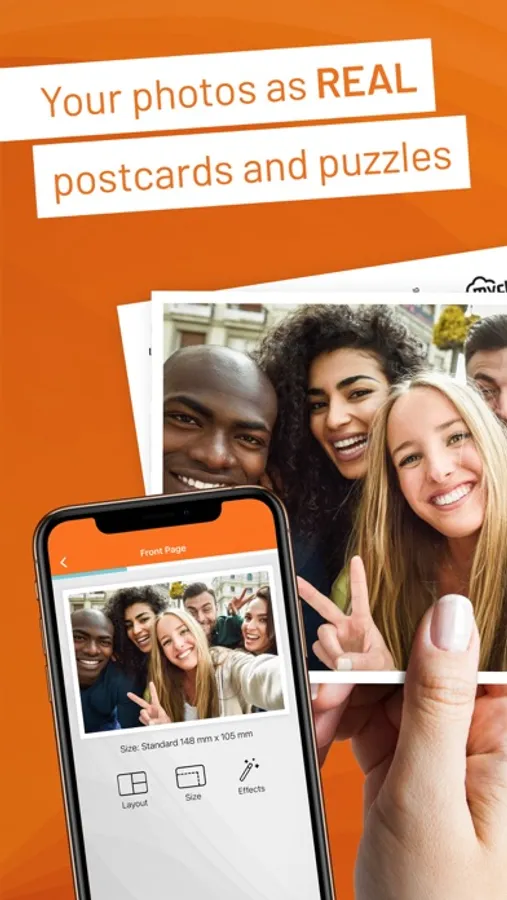 *The only climate neutral postcard app* Send your own pictures as real printed post cards, greeting cards or NEW as original Ravensburger puzzle worldwide from your smartphone to your loved one's mailbox.