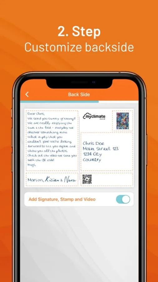 Furthermore, you have the possibility to put even more liveliness into your creation by adding a video. Special feature: Special feature: Let the sender know that you received the postcard by only scanning the QR-Code.