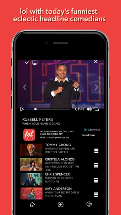 lolflix is for the stand-up comedy connoisseur who just wants to see, listen, and laugh out loud while discovering something new, diverse, uncut, uncensored and unapologetic, and wants it right now, wherever they are, right here in the palm of their hand, with or without a two-drink minimum.